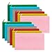 Includes 1 letter size hanging wall organizer, either 14" W x 24" H OR 14" x 36-1/4" H, with 6 removable file folder pockets in assorted jewel tones, 1 clear front pocket and 1 blank label sheet
