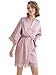 💘 FEATURES: Womens cute satin short robe designed with a relaxed fit, above-the-knee length, V-Neck, 3/4-length sleeves, side seam pockets, an easy tie sash belt& inside tie