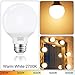 ✦VANITY LIGHT BULB 2700K Warm White-Soft light makes your makeup process much relaxed. It is vital to choose the glare-free light bulbs for mirror or bathroom to protect your eyes from fatigue, especially when you need to look at the mirror for a long time to makeup. No UV or IR, which may be harmful to your face. This LED globe light bulb emits a soft warm white light, providing you with a smooth and cozy ambiance to make you feel relaxed at home.