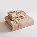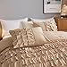 PLEATED QUEEN SIZE: 3-piece scalloped braided set includes one diamond pleat texture pattern duvet cover and two pillowcases. Cover only - Comforter not included. Queen size khaki duvet cover measures 90” x 90” and includes zipper closure and string ties. Queen size pillowcases measure 20” x 26” with back overlap closure for an elegant, seamless look