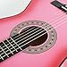 Guitar Dimensions: 38"(L) x 14"(W) x 3.25"(H). This 38 inch guitar is designed specifically for young learners or women with a scale and compact body that offer excellent playing comfort. PACKAGE INCLUDES: a case, guitar pick, pitch pipe, a shoulder strap, and an extra set of strings, NO assembly required. Nice shiny finish, and a some floral decoration around the sound hole, makes it decent and stylish.