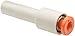 Push-to-connect inch tube connection on one end and a plug-in fitting connection on the other end