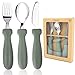 SET OF 3, EASY TO CLEAN, utensil sets include a baby spoon, fork and knife, high quality stainless steel and food grade silicone material are extremely durable and heat resistant, toddler training utensils are easy to clean. Please clean the stainless steel children flatware set before use, the compact set have everything you need