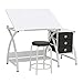 SIDE SHELF + DRAWERS: The 15.5" W x 14" D side table top keeps your craft supplies close and flat while the top is tilted for drawing. The three fabric drawers offer you a 12.75" W x 12.75" D x 4" H space to organize your art supplies. Larger craft supplies can be stored on the 15.5" wide x 14.25" deep bottom shelf