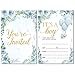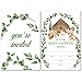 great value & quality - the woodland baby invitation bundle includes 25 thank you postcards, 25 white envelopes, 25 invitations, 25 books for baby cards and 25 diaper raffle cards.