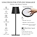 【Dimmable Dinning Lamp for Table】: With 10%-100% stepless brightness touch control dimmer, easily change the brightness with long press touch control button of the light top. Black cordless lamp for table can meet you all ambience demand. Non-slip base allows you to put any flat surface. A minimalist design fusions of modern chic charm, suitable for outdoor camping and dinner lighting.