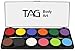 TAG Regular Palette comes with 12 regular colors: Yellow, Pink, Light Green, Dark Green, Brown, Black, White, Orange, Red, Light Blue, Dark Blue and Purple. in 10gram containers, along with 2 face paint brushes.