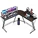 L-shaped desk offers a large spacious area in a stylish black walnut color for work and gaming while features a shelf for decorations or a laptop