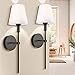 【Durable Premium Material & Unique Design】The wall sconces set of two use sturdy metal base and white fabric shade,won't easily oxidize or fade. The fabric lampshade will Softening ray of the light protects your eyes and bringing you a comfortable and relaxing atmosphere. Unique design is suitable for many styles of home decoration,Never go out of style!