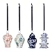 Perfect mini sizes for hanging: Pagoda 1 1/2 X 1 1/2 X3 1/4" Temple Jar 2 X2 X 3" Ginger Jar 2 X2 X3" Meiping Vase 1 3/4 X1 3/4 X 3" And 5" ribbon is perfect for hanging as Christmas tree ornament