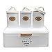 Multi-function kit:Come with large-capacity bread box, there are and 3 small storage tanks.The surface is nailed with high quality leather labels to store coffee, tea bags and candies. This kit can neatly pack your favorite food and make your kitchen with a holistic modern atmosphere.
