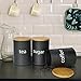 Packing Includes:Come with 3 black canisters,each modern chic kitchen canister with bamboo lid,can locate them side by side or staked,to enhance the subtle elegance of the matte finish on the canisters bodies.