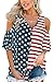 PATRIOTIC AMERICAN FLAG SHIRT WOMEN COLD SHOULDER LOOK - This 4th of July Shirts Women Cold Shoulder Cutouts Button Down Loose Fit Top Is So Effortlessly Chic for Memorial day And Fourth Of July!