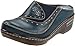 Slip-on platform clog featuring leather upper with contrast embossing at topline and vamp