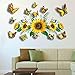3D Sunflower Stickers Set: You will receive total 13 pcs SPRT spring summer wall sticker, 1 pieces big sunflower wall sticker with 12 pieces gold butterfly metallic wall decals.