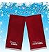 Two terry red bands decorates the white towels; One is on the hat with white embroidered snowflakes. The other is striped right above the embroidered buttons. Each towel measures 16 x 25 inches.
