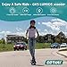SUPER BRIGHT WHEELS – Large and extra wide wheels light up and flicker with the crease of rolling speed while gliding on the road. LEDs inside the wheels are operated by centrifugal force without any batteries required.