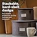 STACKABLE DINNERWARE STORAGE ORGANIZER - Dinner plate storage case holds a set of 12 plates. Set includes 12 felt plate separators for protection against chipping and scratching.