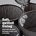 The microfiber is soft and plush, and has a decorative quilted stitching and lighter grey trim binding for an added touch of style