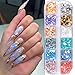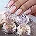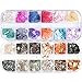 【Package】 You will get 2 shell slices with 12 compartments. There are 24 different colors of nail sequins, with copper flakes and marble colors. Different angles and lights show different colors.