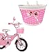 Kid bike Basket Size about: 8" x 5" x 5".Made of smooth and durable plastic.children can put their favorite toys in the basket,allowing Kids to bring their favorite personal items along for the ride