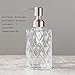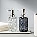 【FEATURES】 This set of soap dispenser is designed easy pressing, durable and practical. Made from embossed durable glass with an all-over dimpled pattern, with BPA-free plastic smooth pump head, perfect accessory to your home for a very long time. It can be re-used all the time.