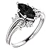 Filigree Onyx Black Twig Leaf Tear Drop Proposal Ring