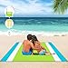 【Beach Blanket Waterproof Sandproof】: Unfolded Size:79''x 87''( 200 x 220 cm), it could hold up to 4-7 people, providing plenty of space for people to sit, lay or play.Includes 4 stake anchors, a safety carabiner and a carry bag.