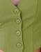 Feature: Sleeveless, v-neckline, solid color, no stretch fabrication, front button closure.