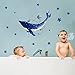 Blue Whale Clouds Wall Sticker: This wall sticker has 4 blue whales, they wander in outer space, stars hanging on the clouds, and our common home - the Earth, how fantastic the design of this set of blue wall stickers!