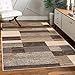 PATTERN AND STYLE: Bold geometric patchwork pattern; contemporary design; available in Blue/Taupe, Chocolate, Light Blue/Beige, Light Blue/Ivory and Slate color options; coordinates with transitional, modern, and mid-century modern decors