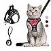 【Cat Harness and Leash Set】: 2-in-1 set includes adjustable harness that made by comfortable material and air-mesh padding, with a 60inch durable leash, which can bring extra comfort and protection, Vest-style design can evenly distribute leash pressure across the chest and shoulder to prevent choking or neck strain, sufficient length of leash makes it a perfect choice to maintain balance between freedom and control for your pet during daily walks.