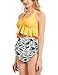 BIKINI TOP: Flounce design looks very cute, V Neck and Halter design makes you more sexy. The Halter of the bikini also helps you push up.