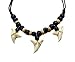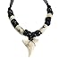 This shark tooth necklace features 3 awesome genuine Mako Shark Tooth pendant accented with attractive wooden beads and black waxed cords. The necklace cord length is adjustable for your perfect fit from 20 to 30 inch by sliding the slip knots of the waxed cord. A cool looking beach surfer Shark Tooth Necklace for Men Women Boys Girls.