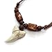 This shark tooth necklace features 13! awesome genuine Mako Shark Tooth pendant accented with attractive wooden/bone beads on black waxed cords. The necklace cord length is adjustable for your perfect fit from 20 to 30 inch by sliding the slip knots of the waxed cord. A cool looking beach surfer Shark Tooth Necklace for Men Women Boys Girls.
