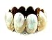 This is a bracelet made out of highly polished Mother of Pearl shells set on wooden backing. All the pieces are strung together by 2 Sturdy Elastic Strings for one size fits most! A super crisp and smart accessory for you.