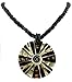This necklace features Mother-of-Pearl and Cone Shell artfully arranged in a circular fashion and accented with an Eye of Shiva in the center. The pendant is matched with a weave of stunning black seed beads to create this beautiful necklace.