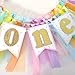 RAINBOW HIGHCHAIR TUTU - The 1st rainbow birthday banner is a combination of six different colored ribbons and tulle , each of which is manually tied to the hemp rope by workers and is not permanently fixed , you can adjust it according to your preferences to make the banner more perfect