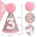 ✨EXQUISITE GLITTER CONE HAT - Glitter confetti (multicolor) crown with pink felt lining and pink pompom decoration , there is a big pink pompom on the top and the cone hat is connected together , all hats are made of felt material , the elastic band on the hat can be stretched and adjusted to fit the baby's head