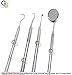 4-Pcs Professional Dental Tool Set: includes 1 x extra-large dental mirror, 1 x dual-end periodontal instrument, 1 x double-ended sickle scaler and 1 x dual tool probe and scaler.
