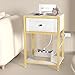 Simple & Minimalist Night Stand -- With 2 open shelves and 1 hidden storage, this slim end table can be a good assistant to tidy up your bedroom and living room. Leave your chargers in the drawer and your books on the shelves. Set up a warm lamp on the table top to light up the whole space. The gold and white combination gives the table a charming and chic look, adding a nice touch to your home