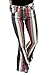 Red and white creative stripes, button fly, basic five pockets, high waisted, flare legs, ripped hole at the knees and Frayed Hemline.