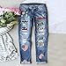 Features: High quality denim cotton, ripped Christmas print design, classic distressed wash process, fashionable charm.