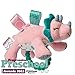PINK DINOSAUR: Ultra-soft dino is a sleepy-eyed sweetie in pink with a blue frill and soft stuffed horns, features custom dinosaur print on its belly; sewn-in silicone teether is BPA, PVC and Phthalate free