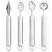 🍉4 In 1 Stainless Steel Fruit Carving Tools:4 Different shaped fruit tools provide you 4 different functions for food preparation. Melon fruit scooper are great for removing seeds and fruit pulp separating. V-shape melon baller carving knife suitable for carving exquisite patterns on fruits. Fruit core remover tool can help you simply remove the fruit core. Melon baller scoop is easy to dig a variety of fruit balls, such as watermelon, dragon fruit, cantaloupe, also works as an ice cream scoop.