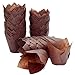 UNIQUE, ELEGANT APPEARANCE: Each baking cup's walls vary in height, forming a tulip flower shape. Their brown color and unique design create an elegant product presentation, perfect for maintaining the freshness of your cupcakes, muffins, or cheesecakes without sacrificing their playful appearance;