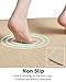 DURABLE&NO SMELL: Rubber backing is waterproof, so water won’t seep underneath the absorbent bath mat and causes smell. Moreover, it won’t have shedding or pilling problem like traditional shaggy bath mat. It won’t tear apart like memory foam bath mat. Great thin bathroom rugs fit under door.
