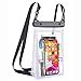 IPX8 Waterproof Floating Dry Bag - The waterproof cell phone pouch is floatable with air filled the bag body, preventing your valuables from falling into the water. It is super waterproof / sandproof / snowproof, and perfectly keeps your phone, money, watch, credit cards, sunglasses and other valuables dry and safe