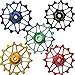 it is cnc machined by AL 7075-T6 round rod ,finished machined by diamond cutter,with diamond metal texture and good abrasion resistance index , it adopts imported Japanese steel bearing,rotating without resistance ,it greatly decreased frictional resistance,and increased cycling efficiency, the design inreased bike derailleur shifting speed ,it causes no noice when shifting speed k and prevent bike chain falling .