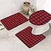 🚽 Large Buffalo Check Plaid Bath Rug Set - 1 x Bath Mat: 20x32inches (About 50x80cm); 1 x U Shape Toilet Mats: 16x20inch (About 40x50cm); 1 x Non skid Toilet lid cover: 16x18inches (About 40x45cm)